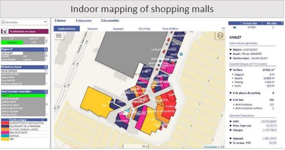 The company uses the Mapping of Things to view their KPI on numerous geographic levels, down to individual rented spaces on the map of the main 115 shopping malls owned by Carrefour Property.